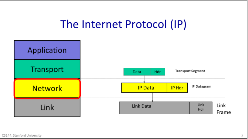 In the internet, the network layer is special: When we send packets into the Internet, we must use the Internet Protocol. It is the Internet Protocol, or IP, that holds the Internet together