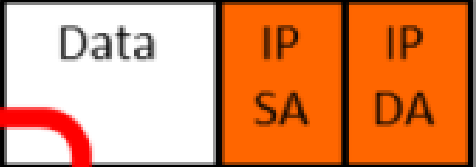 The header contains the IP address of the destination, which we abbreviate here as “IP DA” for IP destination address. The forwarding decision at each router is based on the IP DA. The datagram header also contains an IP source address, or “IP SA”, saying where the packet came from, so the receiver knows where to send any response.