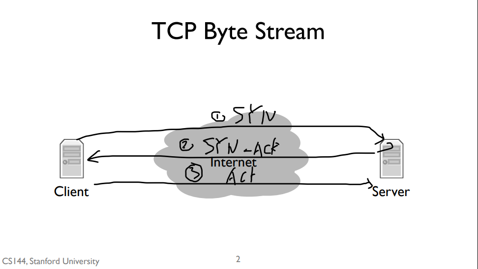 The first step of handshake is when the client sends a “synchronize” message to the server, often called a SYN. The second step is when the server responds with a “synchronize” message that also acknowledges the clients “synchronize”, or a “synchronize and acknowledge message”, often called a SYN-ACK. The third and final step is when the client responds by acknowledging the server’s synchronize, often called an ACK. So often the three way handshake is described as “synchronize, synchronize and acknowledge, acknowledge”, or “SYN, SYN-ACK, ACK”.